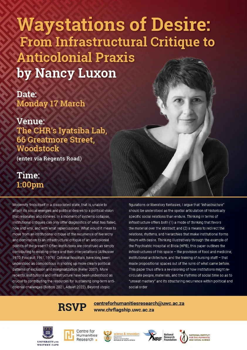 Modernity finds itself in a dissociated state, that is, unable to attach its social energies and political desires to a political vision that resonates and coheres.In a moment of systems collapse, institutional critiques can only offer diagnostics of what has failed, how and why, and with what repercussions. What would it mean to move from an institutional critique of the recurrence of hierarchy and domination to an infrastructural critique of an anticolonial politics of the present?